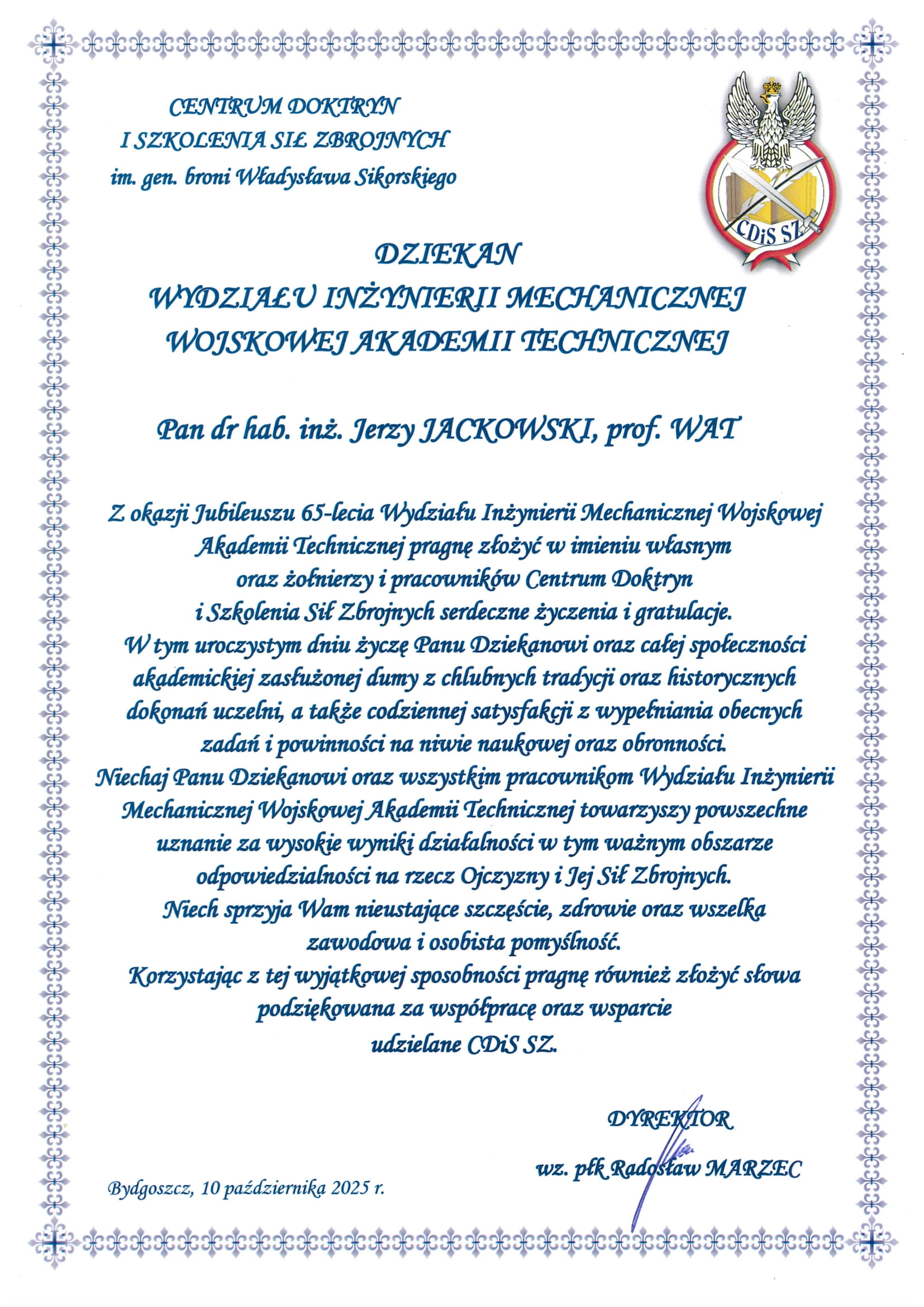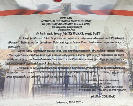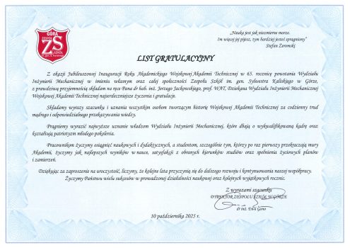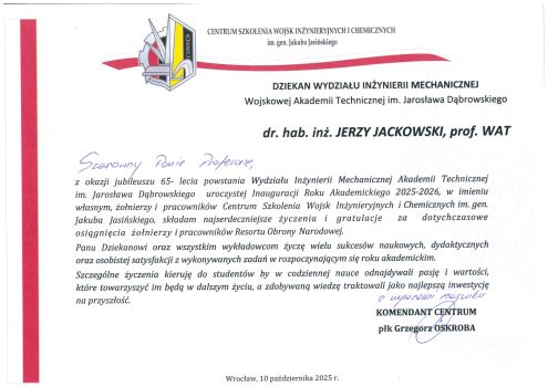 Wydział Historia Struktura Organizacyjna Władze Wydziału Rada ds. Kształcenia Rada Dyscypliny Naukowej Listy gratulacyjne Informator WIM Kształcenie Studia wojskowe Studia cywilne Studies in English Studia podyplomowe BIP WAT – kształcenie Jakość kształcenia Nasi absolwenci Film WIM w j. migowym Student Dziekanat Egzaminy i zaliczenia Praktyki Dyplomowanie Studia niestacjonarne Materiały Rozkład zajęć Inne informacje dla studentów Badania i rozwój Projekty badawcze Publikacje naukowe Nagrody i osiągnięcia Pracownicy b-d Potencjał badawczy Koła naukowe studentów CWOD CRMiPB WAT Kontakt