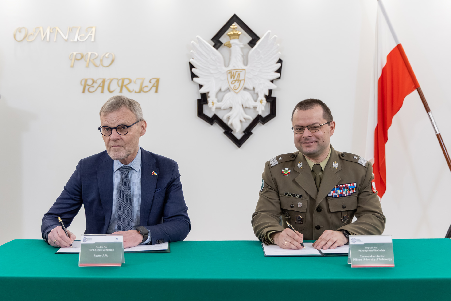 Porozumienie o współpracy podpisali 29 stycznia 2026 r. Rektor-Komendant WAT gen. bryg. prof. dr hab. inż. Przemysław Wachulak i Rektor Aalborg University prof. dr hab. Per Michael Johansen.